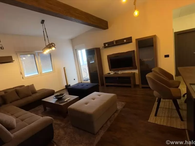 Sastoji se od dnevnog boravka open space sa kuhinjom i trpezarijom, dve prostrane spavace sobe, obe sa bracnim krevetom, 2 kupatila, zastakljena terasa, inverter klima, norveski radijatiri